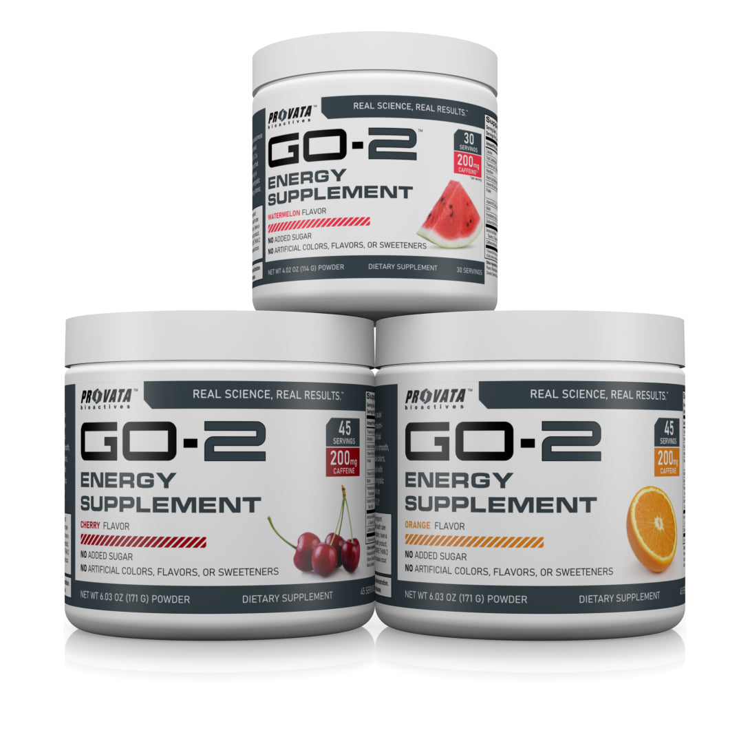 Energy supplements are not created equal. Some may cause anxiousness or nervousness, and many include petroleum-derived dyes, synthetic flavors, and GI-problematic artificial sweeteners. In contrast, GO-2 is formulated to provide a smooth, steady energy boost with a blend that contains all-natural colors, flavors, and sweeteners.* Each serving of GO-2 is loaded with B-complex vitamins, L-taurine, and a scientifically synergistic combination of caffeine and L-theanine.* When you want an energy boost, make the smart choice and grab your GO-2!